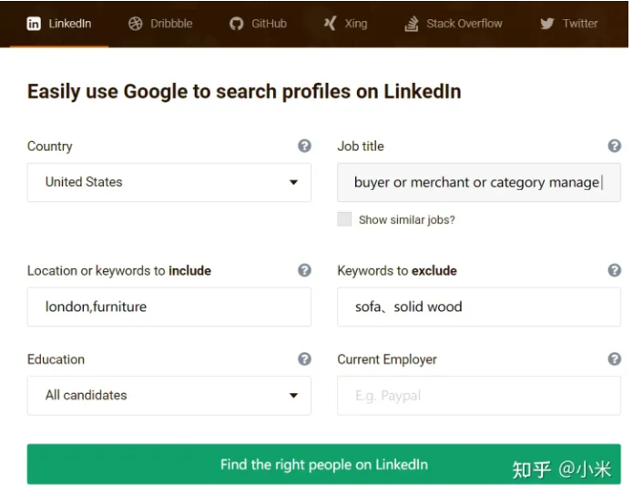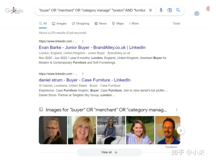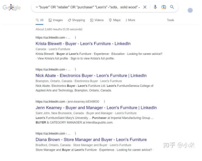 这家叫Leon’s公司的采购员以及相关与采购相关职员的领英资料,都出现在搜索页面里面: