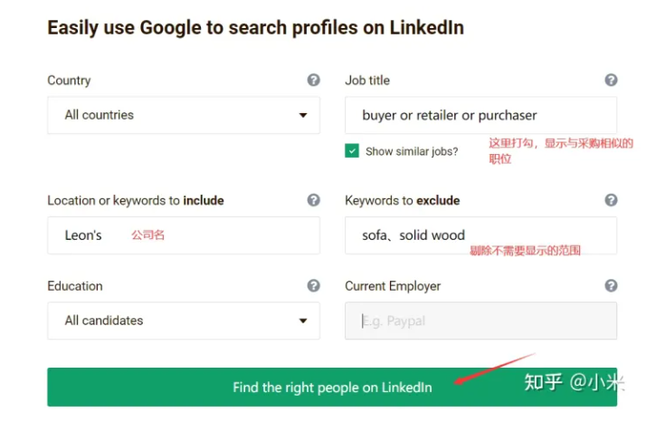 职称,我们可以搜Head,buyer等,并在类似职位这里打勾,方便搜到更多信息。